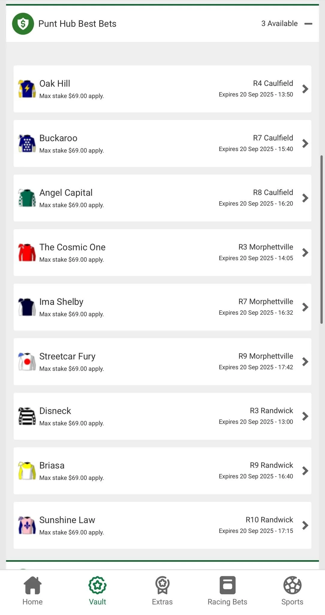 New accounts use the appropriate link below to get the app and you need to navigate to RACING → VAULT → PUNT HUB BEST BETS.